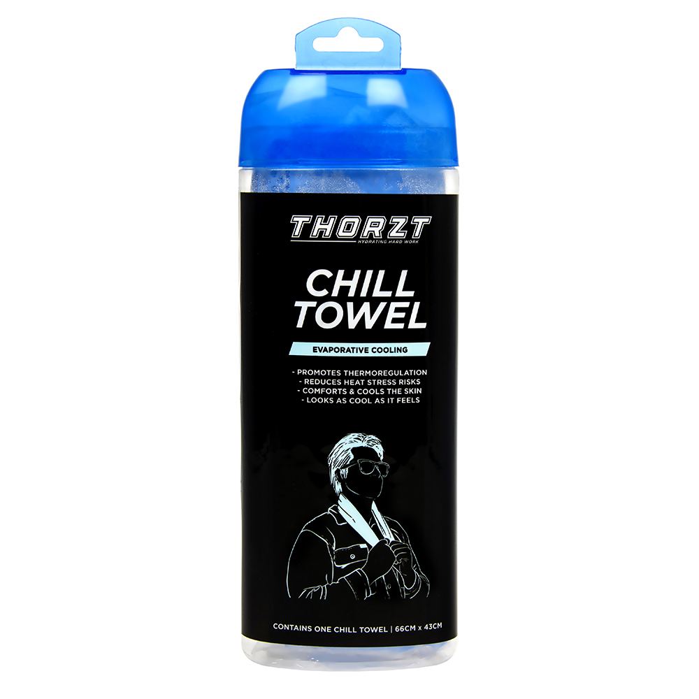 Thorzt cooling towel is designedto assist with heat stress prevention by promoting the bodys thermoregulation.